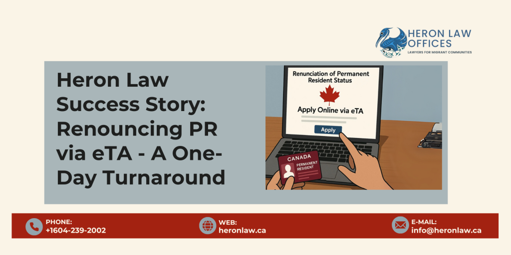 Heron Law Success Story: Renouncing PR via eTA – A One-Day Turnaround