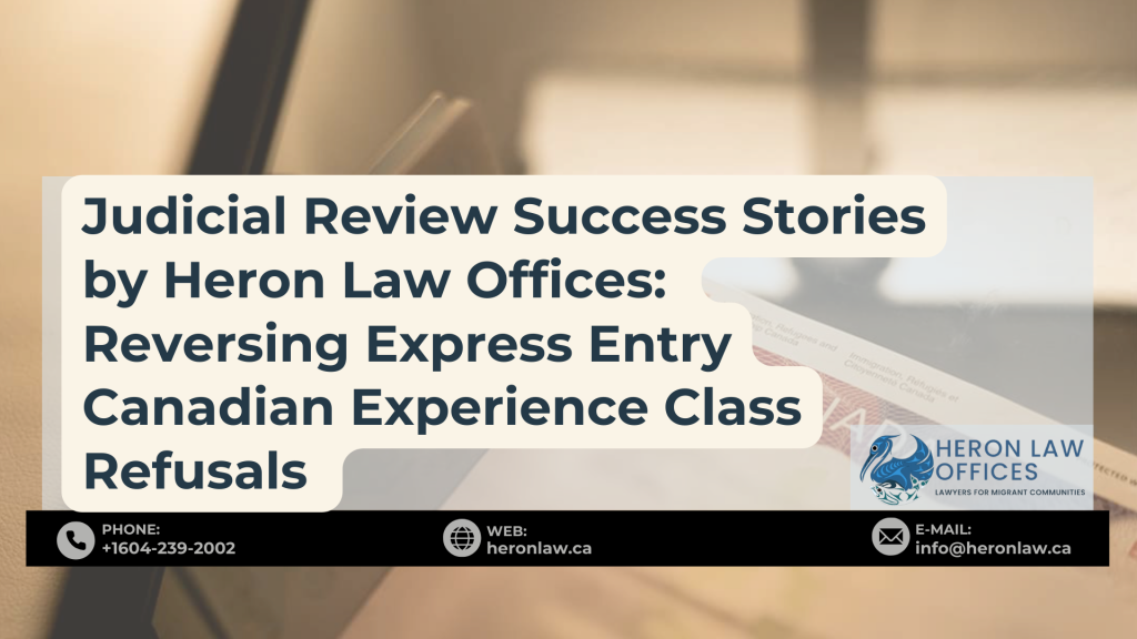 Heron Law Offices recently helped two clients obtain settlements following their applications for leave and judicial review in the Federal Court of Canada, regarding their refused electronic applications for permanent residence (“e-APR”) via the Canadian Experience Class (“CEC-EE”) under Canada’s Express Entry system.